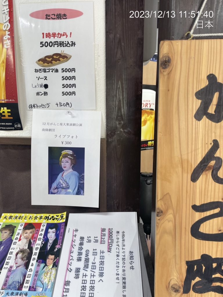 12月公演(南條劇団)ライブフォトのご案内 2023年12月13日 最終更新日時 : 2024年2月3日 ex がんこ座の12月公演を担当してくださっている南條劇団さんのライブフォトをご案内させていただきます。 劇場にて、公演中に撮影した臨場感あふれる撮って出しのライブフォトを1枚300円にて販売しています。ご来場の記念にお目当ての役者のライブフォトをお求め下さい。 皆さまのご来場を心よりお待ちしております。 Follow me!